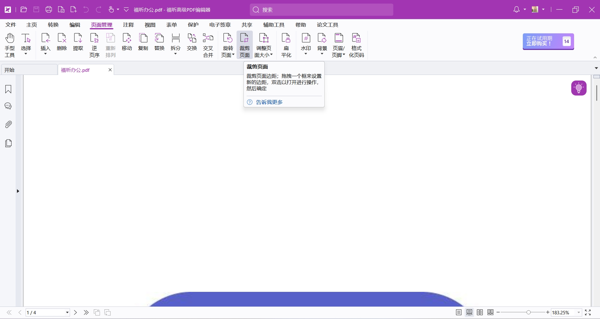 PDF頁面過大怎么辦?想要只展示部分的PDF頁面要如何操作?想要更快的處理好PDF文檔相關的編輯,我們的電腦中少不了PDF編輯器的存在,今天要和大家推薦的是更加專業(yè)的福昕高級PDF編輯器的操作方法,通過這款工具我們可以更快的實現PDF文檔頁面裁剪的操作,來看看具體的步驟是什么樣的吧。
